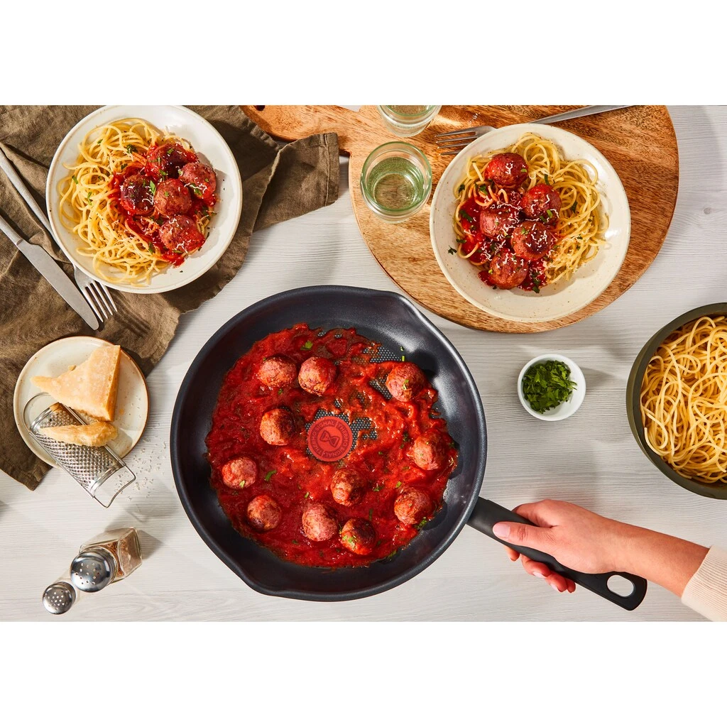 Die Tefal Day by Day On Pfanne ist mit intelligenten Merkmalen ausgestattet, die sich bestens für die Familie eignen und für einen spürbaren Unterschied bei der täglichen Essenszubereitung sorgen. Diese hochwertige Pfanne ist dein idealer Partner für die tägliche Zubereitung köstlicher, gesunder Mahlzeiten und überzeugt mit smarten Details wie etwa einer tiefen Form für großzügige Mahlzeiten und Ausgießern zum mühelosen Abgießen und Servieren. Dank der hochwertigen Antihaftversiegelung kannst du fettfrei kochen und täglich gesunde, köstliche Gerichte auf den Tisch zaubern. Mit der verbesserten Thermo-Signal Technologie gelingt das Anbraten bei jeder Nutzung, während der Boden mit optimaler Wärmeverteilung für gleichmäßige, köstliche Ergebnisse sorgt. Entdecke eine Vielzahl verbesserter Funktionen, die das tägliche Kochen zu einer stressfreien Angelegenheit machen und dir die Möglichkeit geben, die Zeit mit deiner Familie besser zu nutzen.
