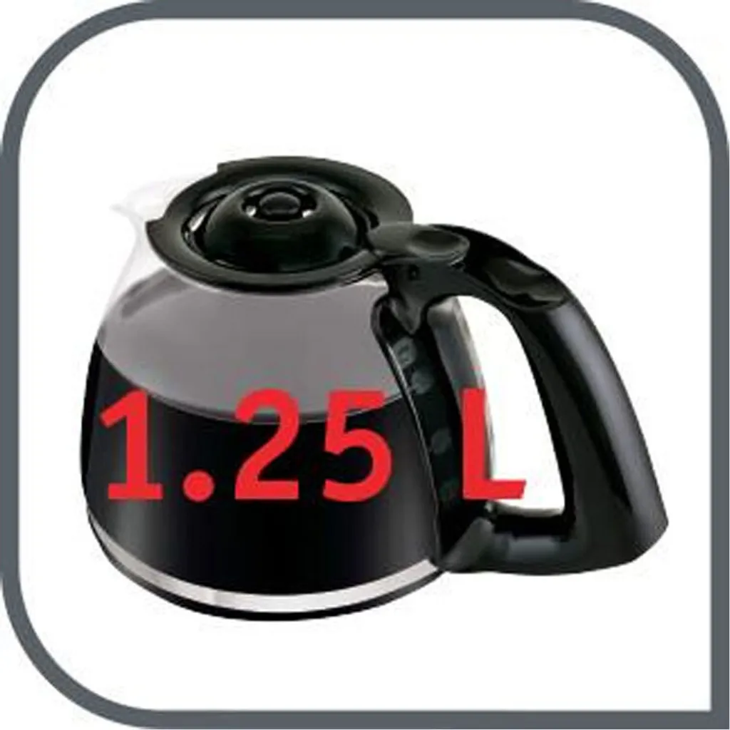 Glaskaraffe : Dank ihres großen Fassungsvermögens von 1,25 Litern können Sie bis zu 15 Tassen frischen Kaffee zubereiten.