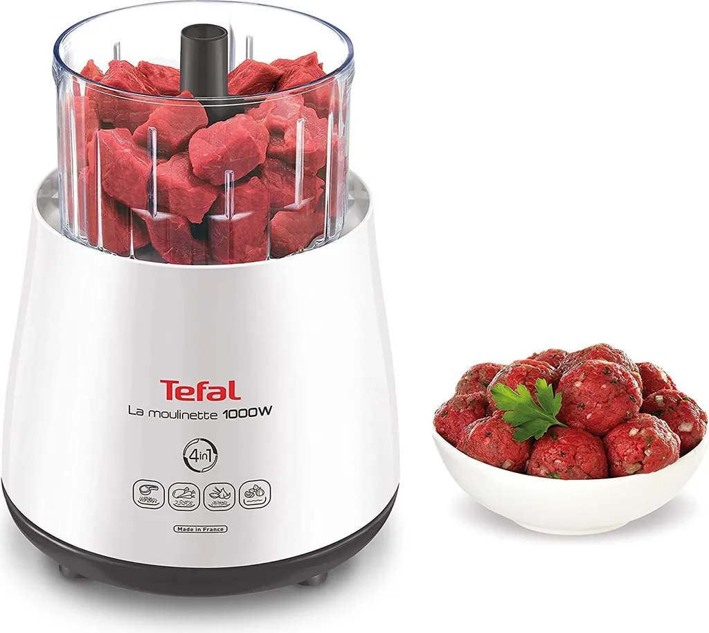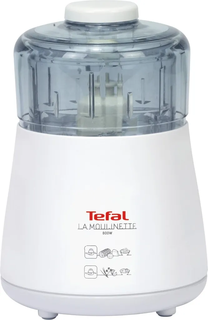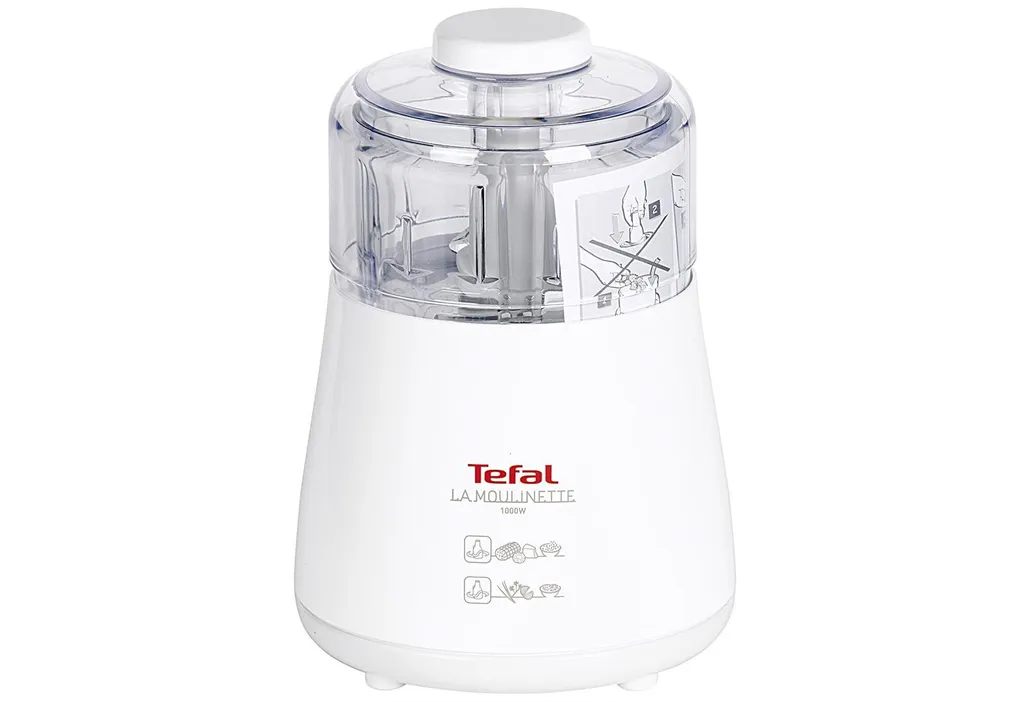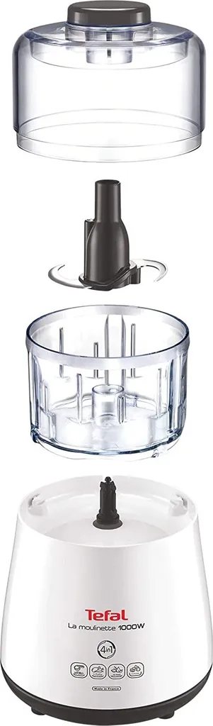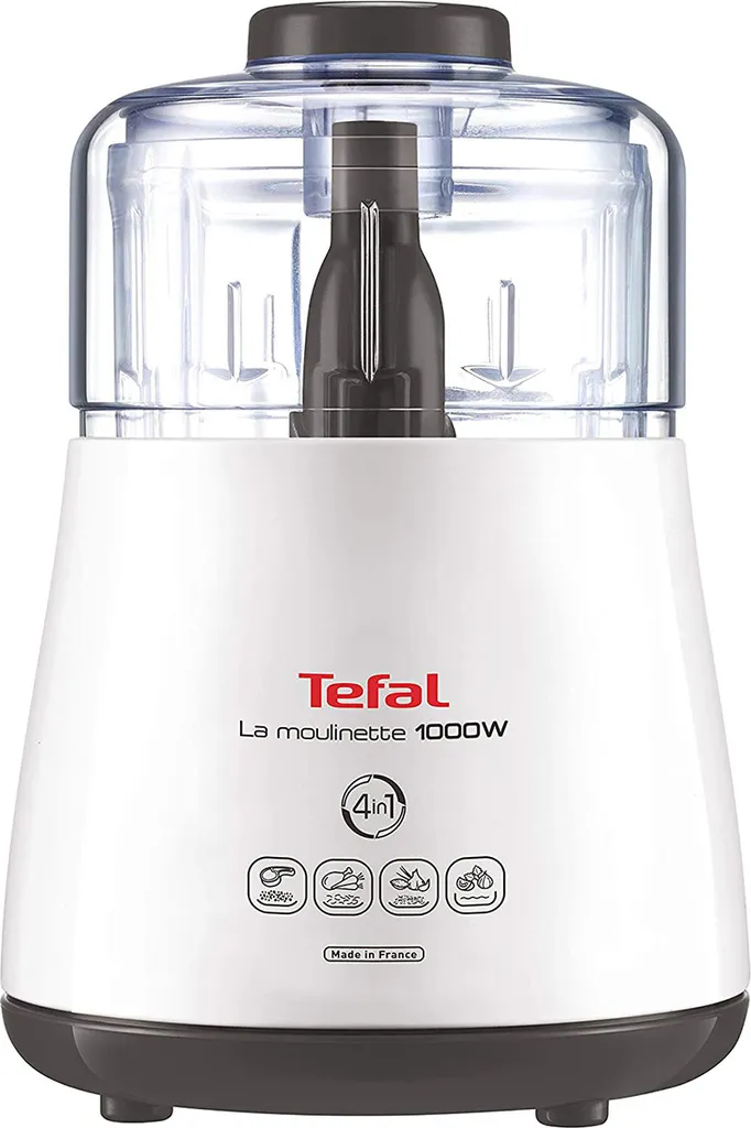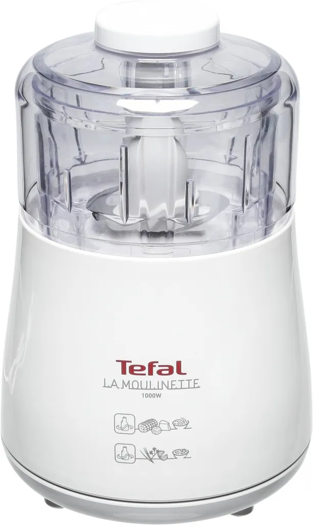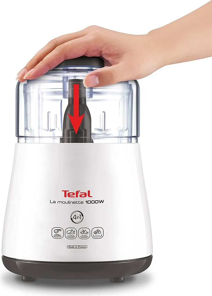 Der Tefal Zerkleinerer Moulinette ist mit einem großen Zerkleinerungsbehälter ausgestattet, der zum Beispiel 300 g Fleisch in nur sechs Sekunden zu Hackfleisch zerkleinern kann. Die Bedienung erfolgt ganz simpel nach dem „1-2-3“ Prinzip – es muss nur dreimal auf den Deckel gedrückt werden und schon sind die Lebensmittel zerkleinert. Der 360°-Deckel kann aus jeder Position auf das Gerät gesetzt werden, der transparente Behälter ermöglicht das Beobachten der Zubereitung.