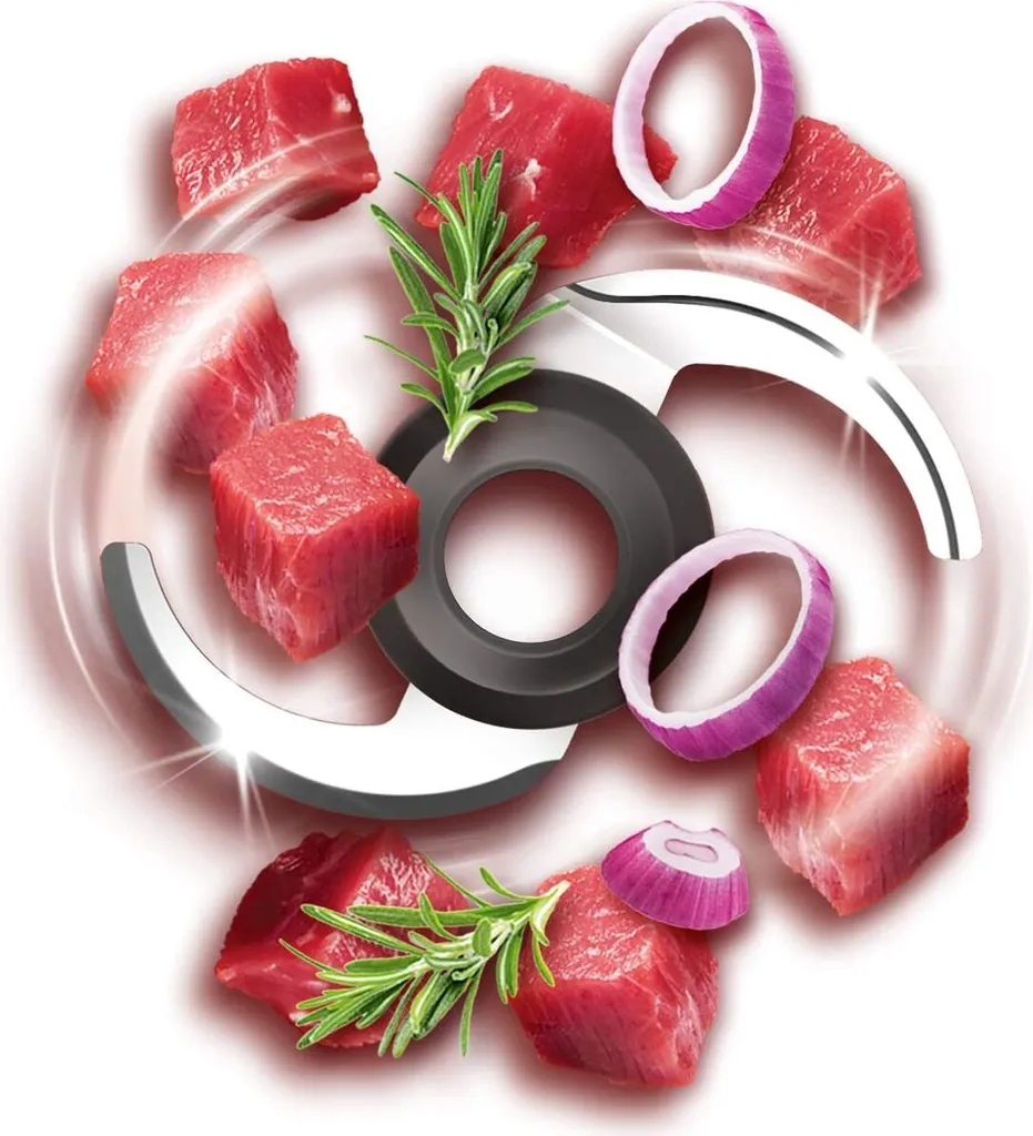 Das Gerät kann bis zu 330 g Zutaten zerkleinern . Einfach zu bedienen und perfekte Ergebnisse zu bekommen.