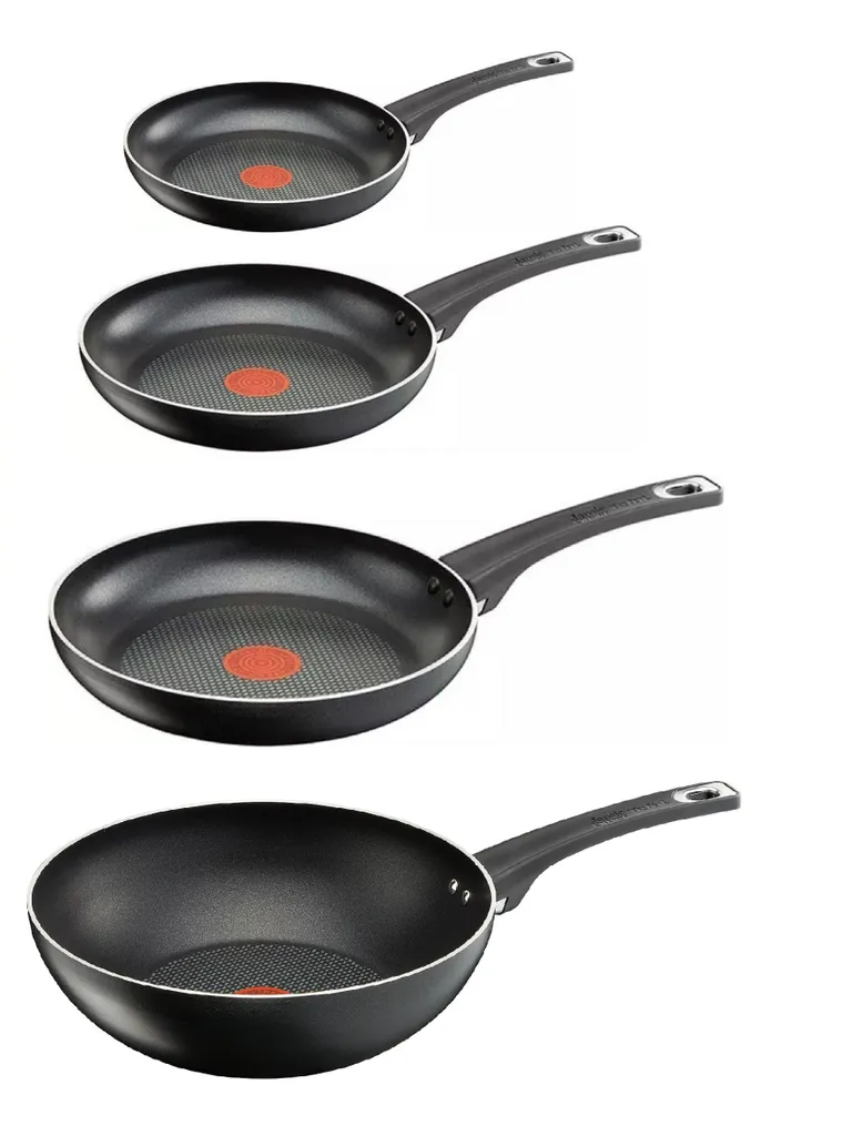 4 Pfannen von Tefal „Jamie Oliver“, in den Grössen 20, 26, 28 cm und 28 cm Wokpfanne