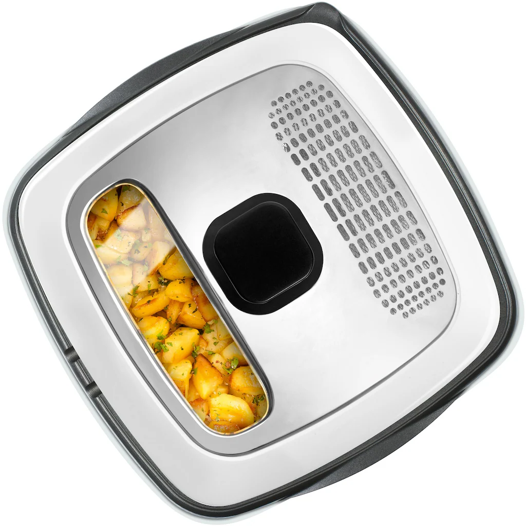 - Kochdeckel mit einem Metallfilter und einem Sichtfenster, Innenbehälter, Frittierkorb und Deckel sind spülmaschinengeeignet