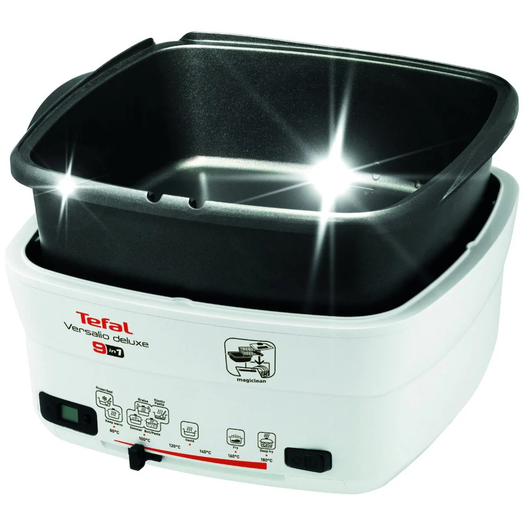 9-in-1 Multi-Funktions-Fritteuse zum Braten, Frittieren, Kocheln, Schmoren, Sautieren, Kochen von Pasta, Paella/Risotto, Tiefkühlgerichten und zum Warmhalten. Regelbare Temperatur von 80°C bis 180°C. Inklusive Pfannenwender. Multifunktional: 9-in-1: Braten, Frittieren, Köcheln, Schmoren, Sautieren, Kochen von Pasta, Paella/Risotto, Tiefkühlgerichten, inklusive Warmhaltefunktion.