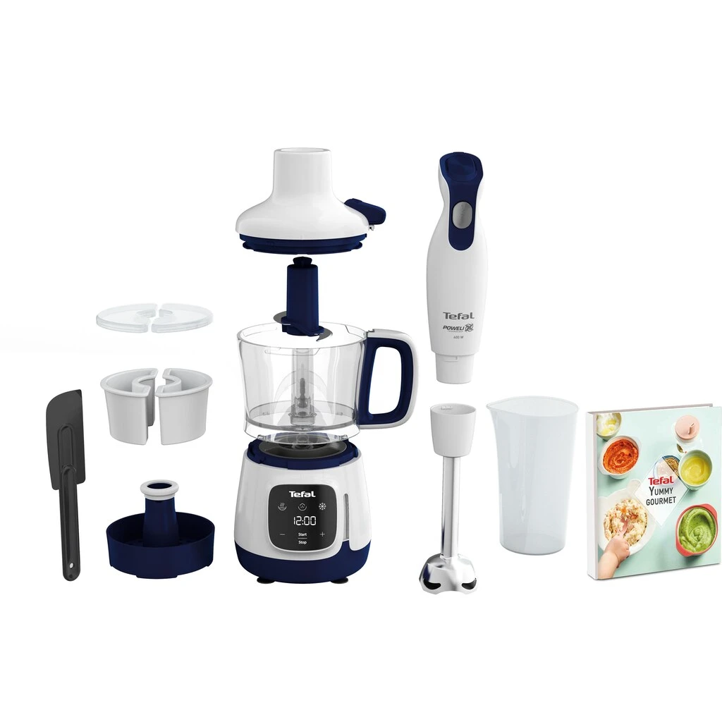 Tefal Stabmixer »HB55W4 Yummy Gourmet Babynahrungszubereiter«, 600 W, Inkl. Stabmixer, Spatel, Messbecher, Keramikvorratsbehälter,Rezeptbuch
