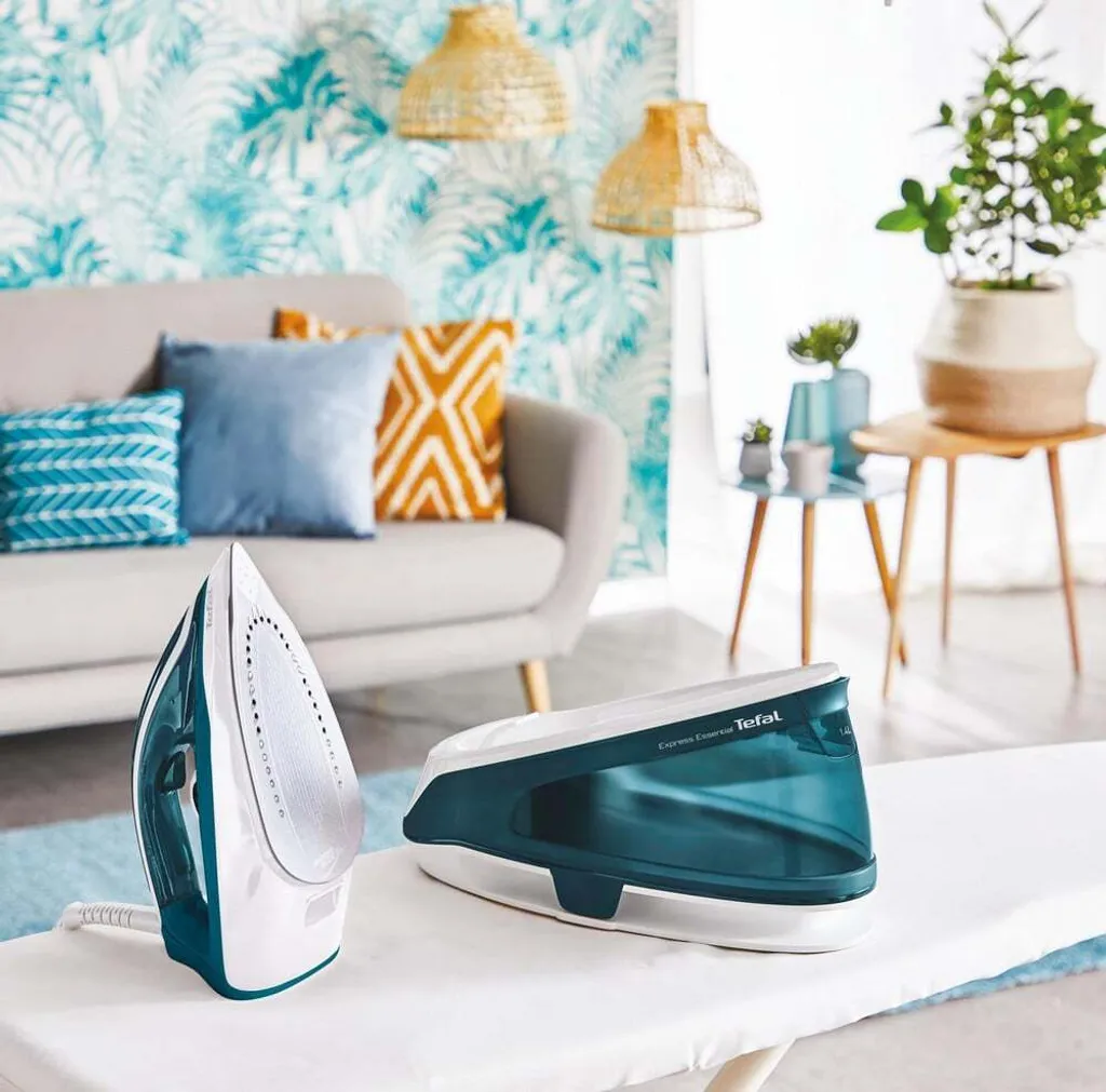 Tefal Express Essential SV6115 – Dampfbügeleisen mit automatischer Abschaltung – Grundplatte: Ceramic Xpress Glide – 2200 W – White/Turquoise