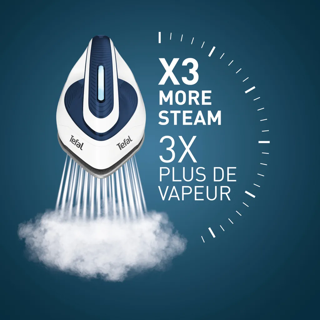 Die Dampfbügelstation Express Essential von Tefal bietet die perfekte Mischung aus schneller Bügelleistung und ausgezeichneter Benutzerfreundlichkeit. Dank ihrer kraftvollen Dampfleistung arbeitet Express Essential schneller als ein traditionelles Dampfbügeleisen.