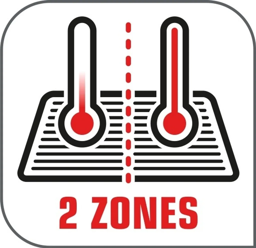 Zwei Kochfelder ermöglichen die simultane Zubereitung von unterschiedlichen Zutaten bei zwei verschiedenen Temperaturen.