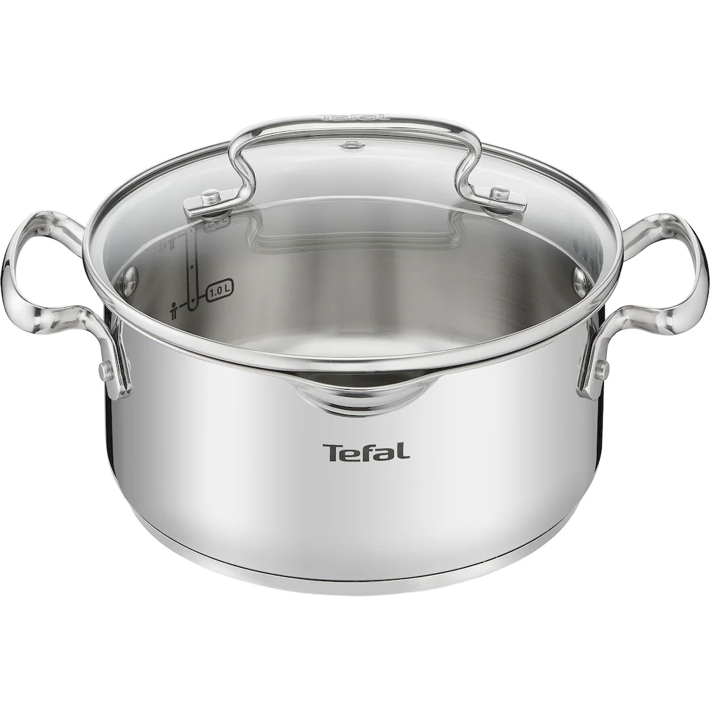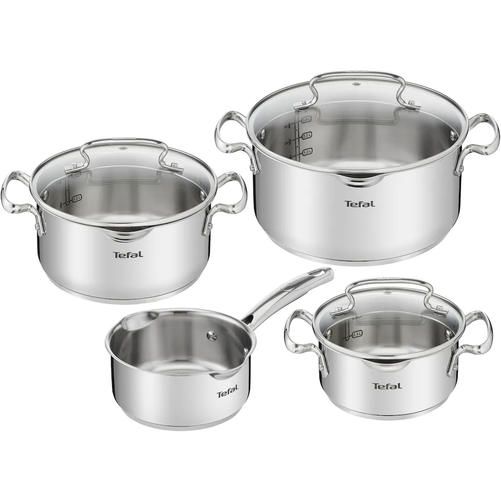 Tefal Topf-Set »Duetto+ G719S7«, Edelstahl 18/10, (Set, 7 Tlg., 7-teiliges Topfset Mit Stielkasserolle 16 Cm, Kochtopf 16/20/24 Cm), Hochwertiger Edelstahl, Hochglanzpoliert, Glasdeckel Mit Siebfunktion