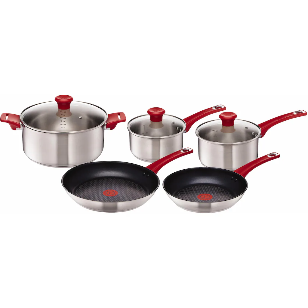 Tefal Topf-Set »Tefal By Jamie Oliver Mainstream«, Edelstahl, (Set, 8 Tlg.), Edelstahl-Set Jamie Oliver, Red Collection, Alle Herdarten,Induktion