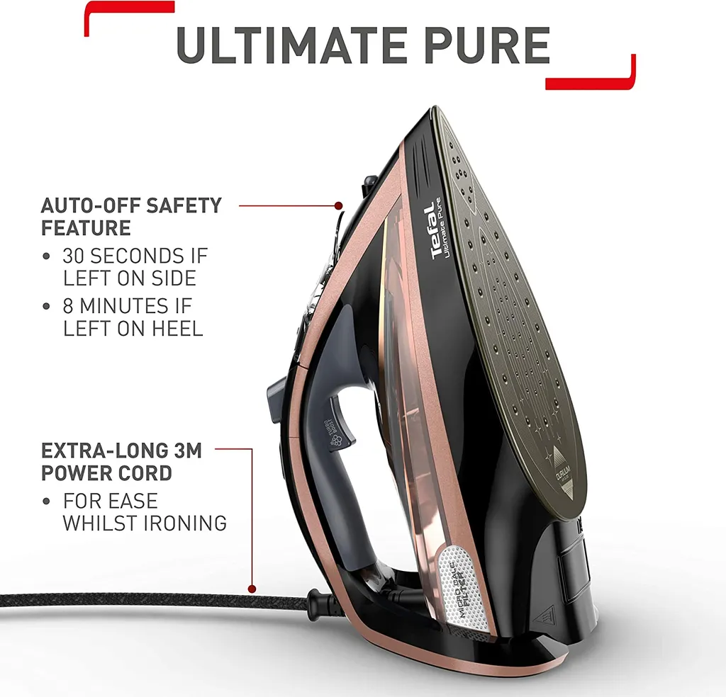 Tefal Ultimate Pure FV9845 Dampfbgeleisen (Dampfbgeleisen, Durilium Autoclean Soleplate, 3 m, 260 g/min, Schwarz, Kupfer, 60 g/min)