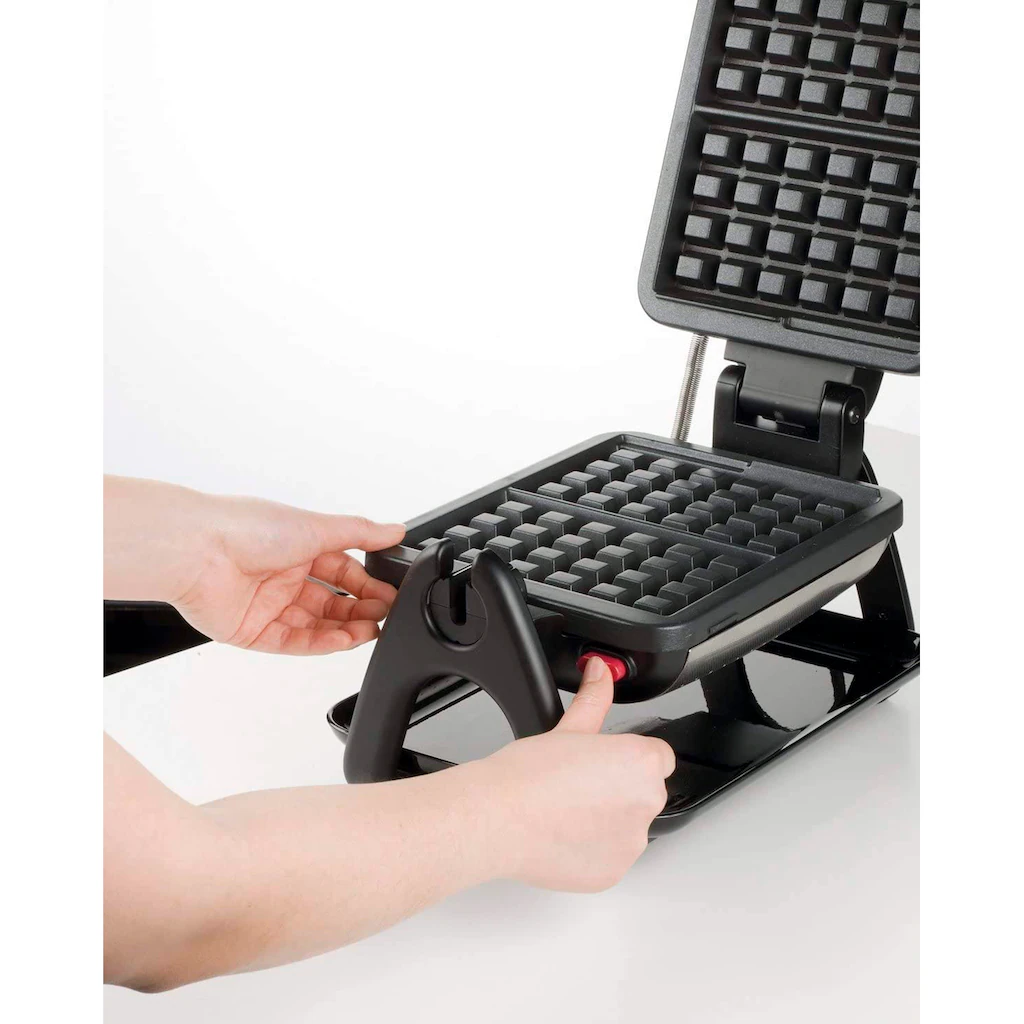- Antihaftbeschichtete, abnehmbare Waffelplatten sind spülmaschinengeeignet